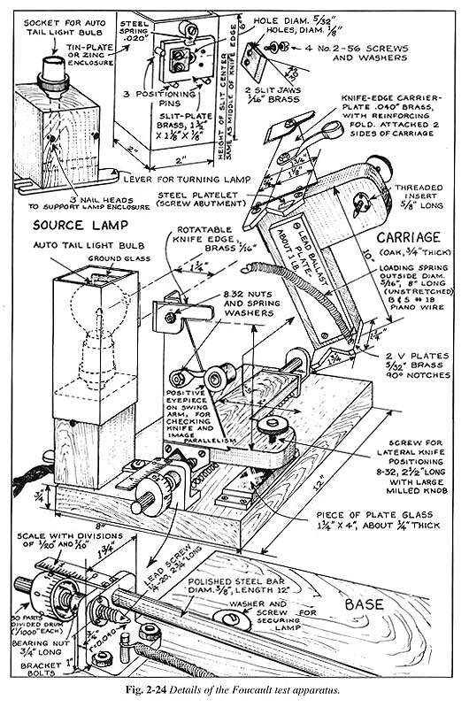 За основу я принял прибор, описанный в книге Ж. Тексеро "Как построить телескоп" (J. Texereau, "How to Make a Telescope"). Различные варианты подобной конструкции встречаются в интернете ( http://stellafane.org/tm/atm/test/tester-1.html).