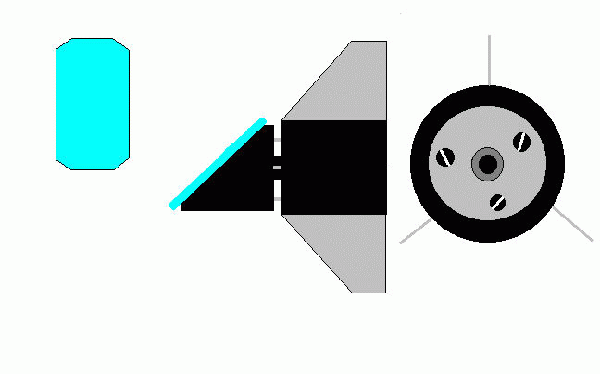 Диагональное зеркало приклеено к металлическому цилиндру, который срезан под 45 градусов.